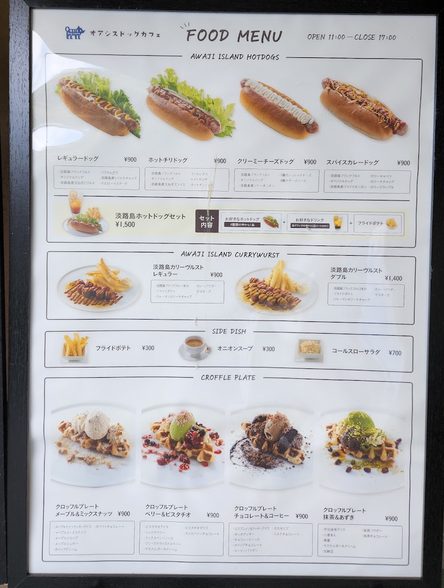 Welcome to Oasis Dog Cafe, a unique retreat nestled in Hyogo, Japan, where canine companions are not just welcomed but celebrated! The menu offers delightful options tailored for both pups and people. Indulge in their enticing Awaji Island Hotdogs, featuring locally sourced ingredients like Awaji Island frankfurters, fresh pickles, and signature condiments, all for just JP¥900. If you're looking for something sweet, the Croffle Stick, available for takeout, features a delectable maple flavor for JP¥500, sure to satisfy your cravings.